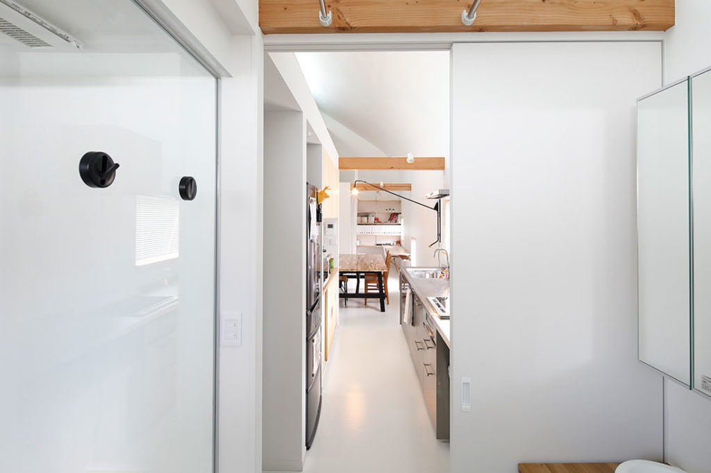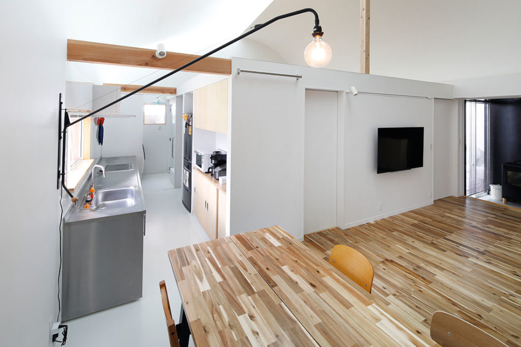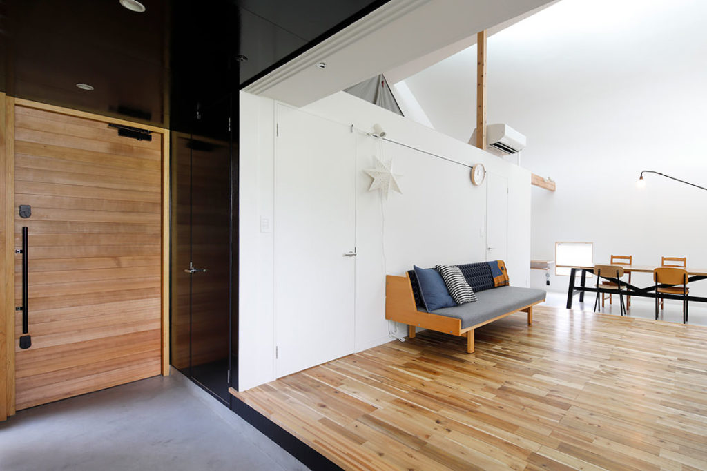 閑静な住宅街の旗竿敷地に建つ、夫婦2人、子供2人のための住宅。